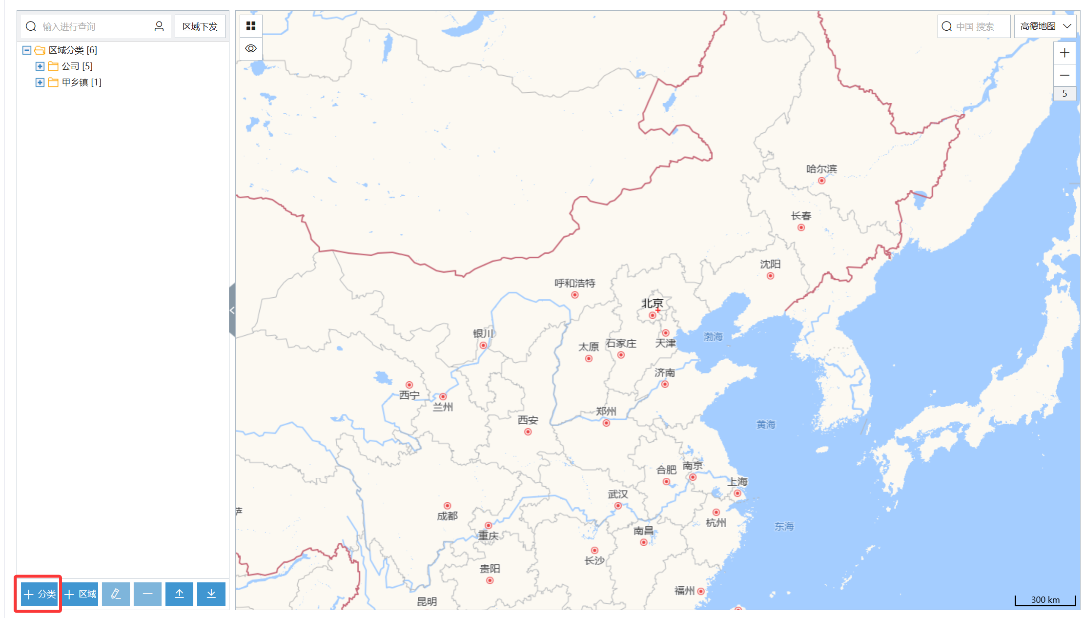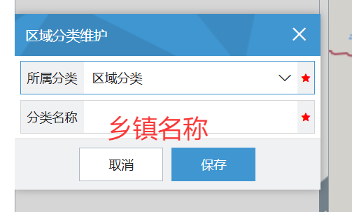 所属分类采用默认的"区域分类",分类名称填入乡镇名称,点击"保存"按钮
