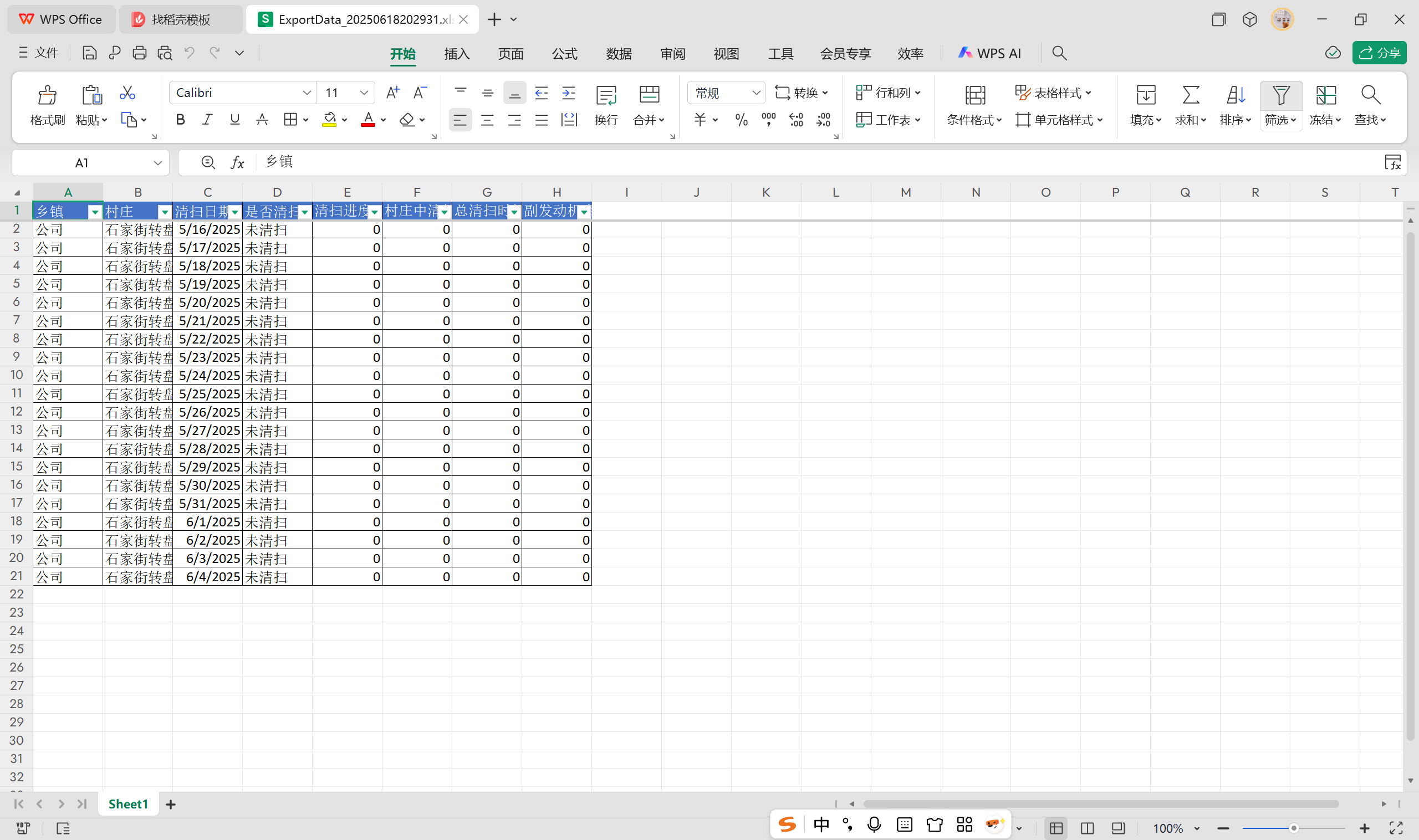下图为多选扫地路线导出excel: