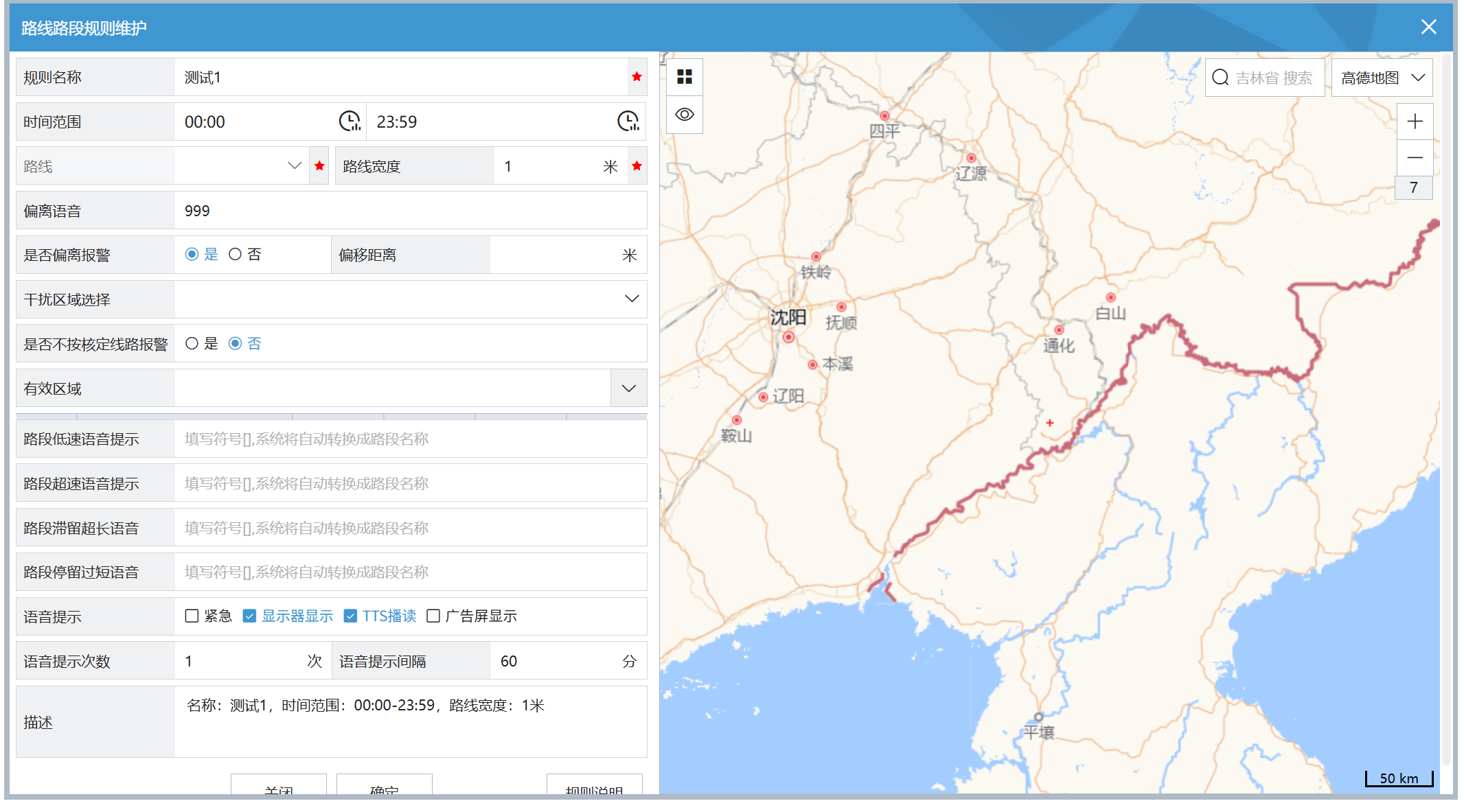 下图为路线路段规则,用于在规定路线行驶时候产生偏移的时候发出报警通知。